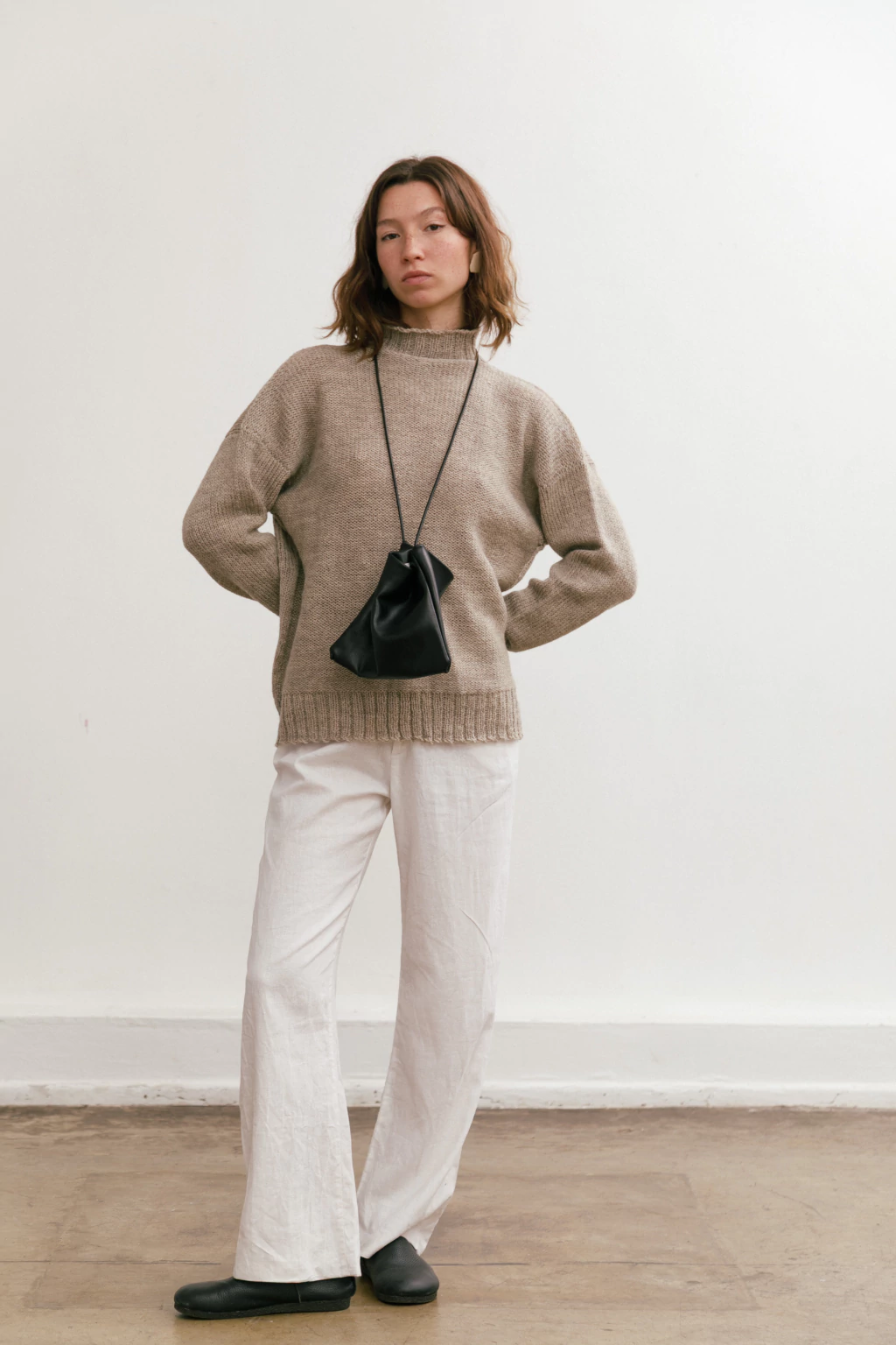 Respetando la silueta y la nobleza del material, nace 1-1021, una pieza única hecha artesanalmente en cuero vacuno.
