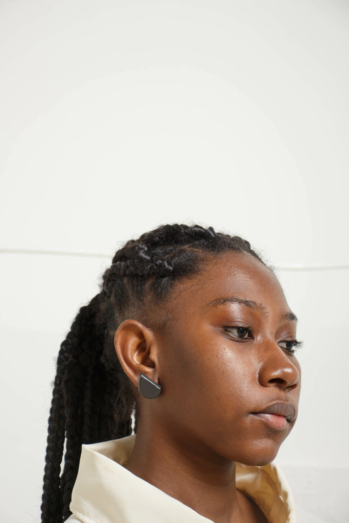 Del arte al diseño. Este par de aros son dos piezas experimentales, amorfas, asimétricas e imperfectas, hechas artesanalmente en cerámica.