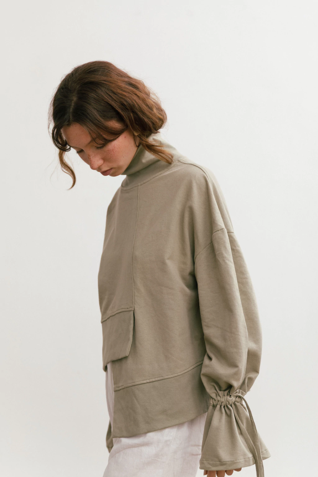 El buzo de diseño más canchero que vas a ver. Confeccionado en rustico 100% algodón con todos sus detalles en ribb al tono. Su nombre hace referencia a Marianne Brandt. En esta pieza destacamos la asimetría como recurso principal, haciendo foco en los diferentes largos y la amplitud del diseño. El cuello alto en ribb y los puños fruncidos son los detalles que hacen a la totalidad de la pieza.